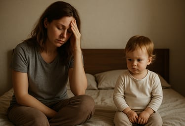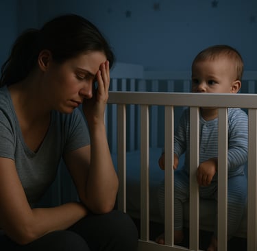 Estudos* mostram que a privação de sono aumenta os níveis de estresse, ansiedade e depressão materna — afetando diretamente a forma como a mãe interage com seu bebê.