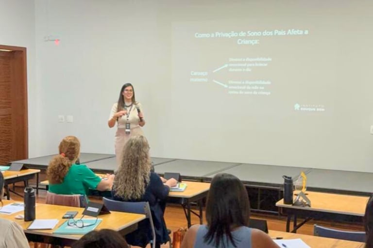 Além disso, sou professora de Pós-Graduação em Pediatria Integrativa e em certificações de formação profissional em terapeuta de sono. Também sou professora em cursos para mães e autora de livros infantis.